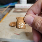 Dollhouse size (1:12 scale) air-dry clay pitcher. Finished with coats of craft paint.